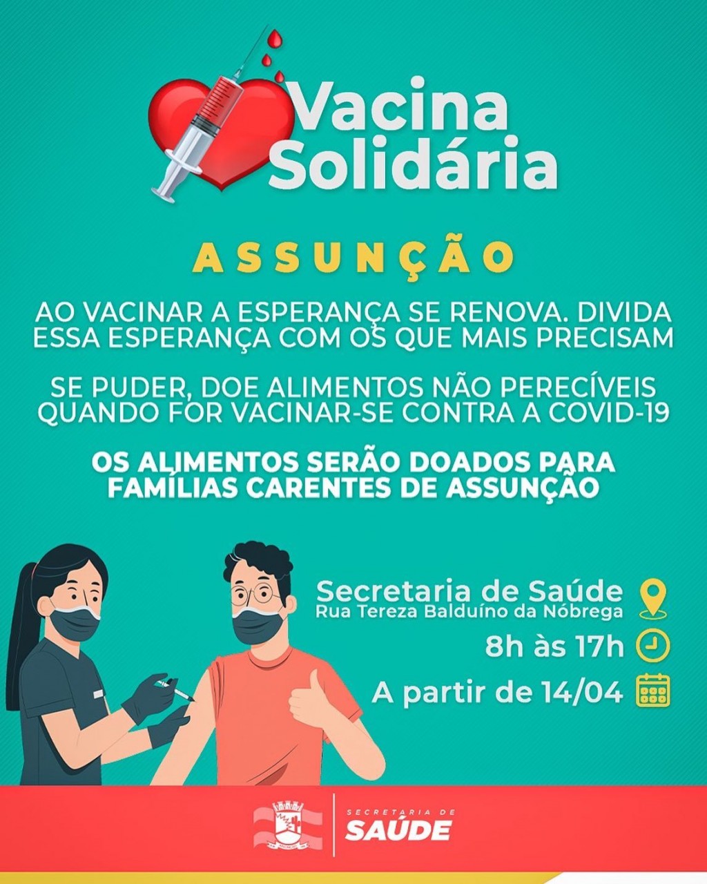 As pessoas que estão recebendo as vacinas contra a Covid-19 e quiserem levar mantimentos estarão ajudando as famílias que se encontram em vulnerabilidade em nosso município.