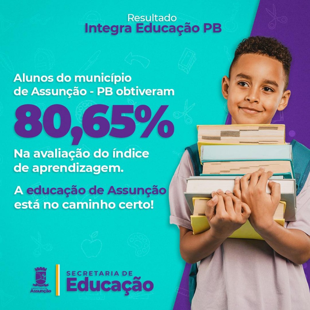 A Prefeitura Municipal de Assunção por meio da Secretaria de educação divulgou nesta sexta-feira (09) o resultado de 80,65% de aprovação obtido na avaliação do Índice de Aprendizagem do Integra Educação PB.