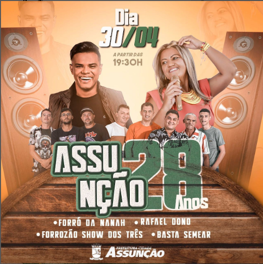 Num esforço concentrado da gestão, com planejamento financeiro feito com cuidado e respeito pelo dinheiro do povo, nos apresentamos a programação do vigésimo oitavo aniversário de emancipação política de Assunção.