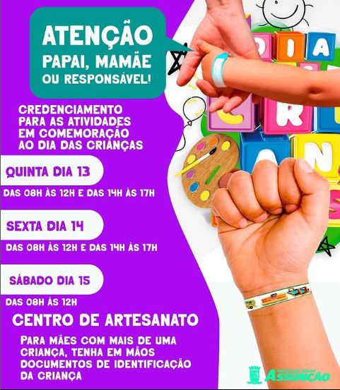 Haverá credenciamento para as atividades em comemoração ao dia das crianças.