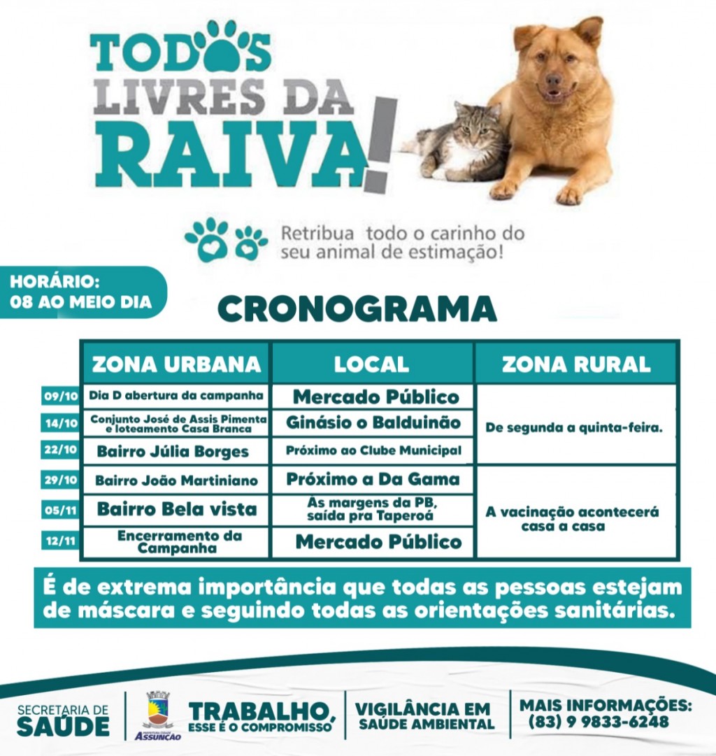 de Assunção estará realizando a campanha de vacinação animal “Todos Livres da