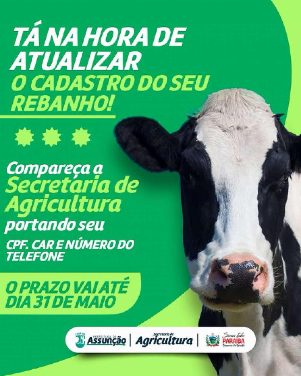 A atualização dos dados do seu rebanho vai até o dia 31 de maio!