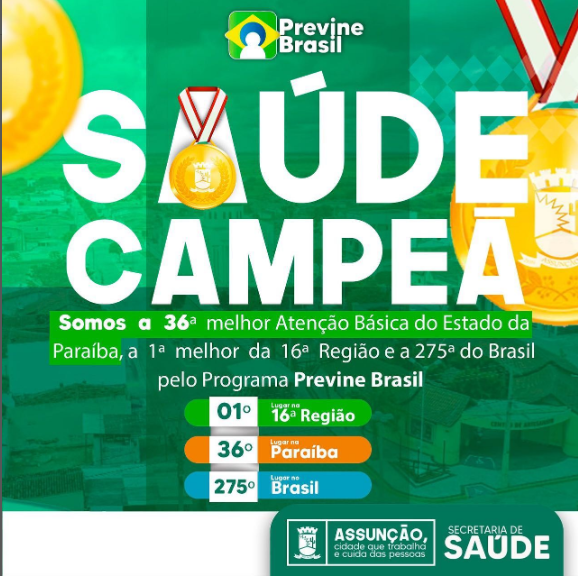 Município de Assunção é destaque de atendimento em saúde na região, no estado e no Brasil 🇧🇷 no quesito atenção básica.