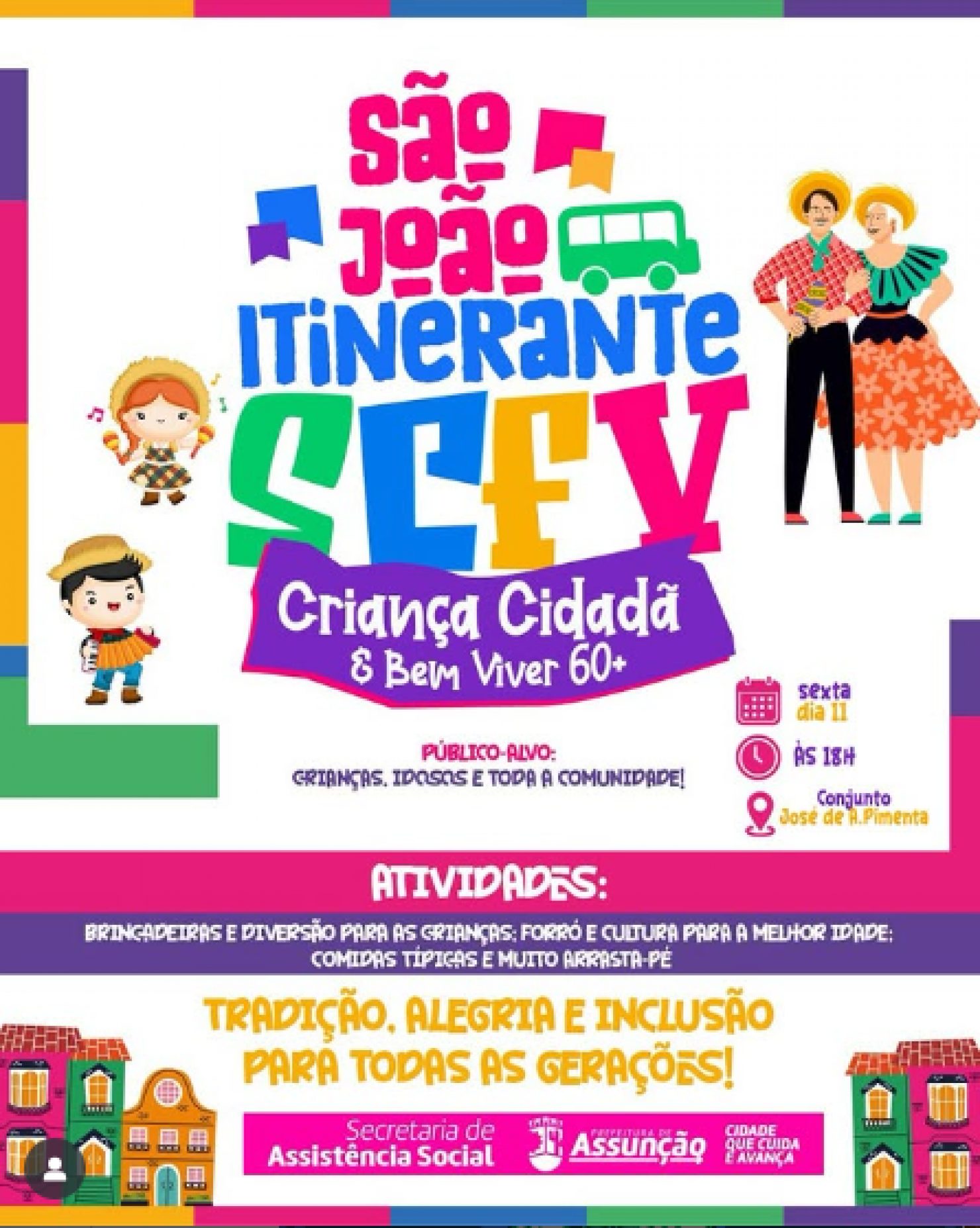 A Prefeitura de Assunção, por meio da Secretaria de Assistência Social, convida você e toda a sua família para uma noite especial de muita tradição e inclusão!