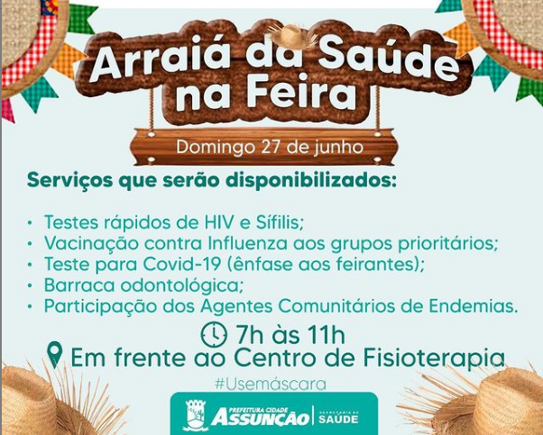 de fisioterapia da cidade, acontecerá o Arraiá da Saúde na Feira.