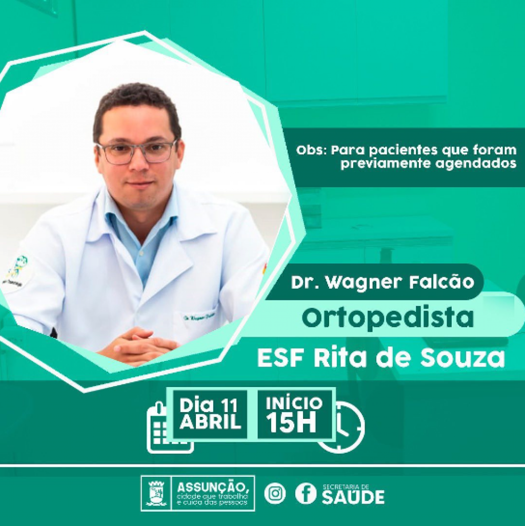 Seguindo nossa política de saúde de implantar cada vez mais especialidades, a prefeitura está disponibilizando na terça-feira dia 11, atendimento com médico ortopedista.