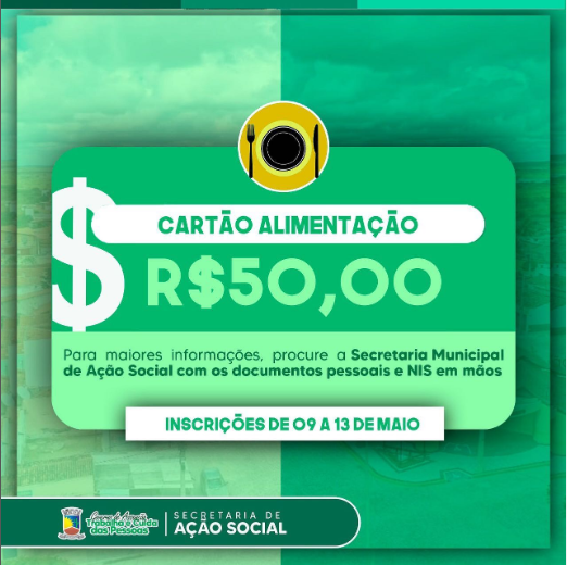A Prefeitura Municipal de Assunção através da Secretaria de Ação Social, em parceria com a Secretaria de Estado do Desenvolvimento Humano (SEDH), iniciará as solicitações do benefício Cartão Alimentação.