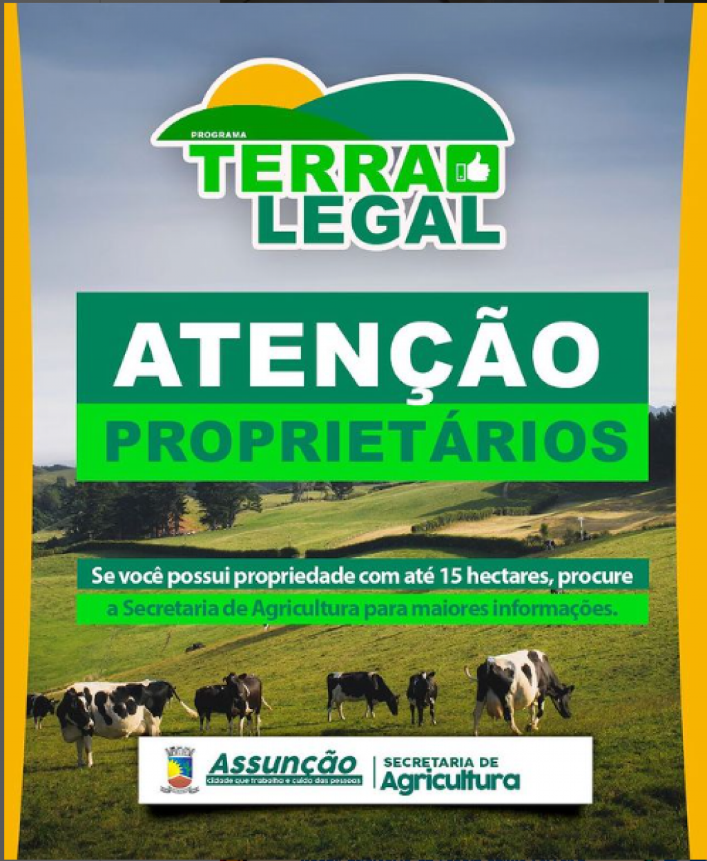 A Prefeitura de Assunção através da Secretaria de Agricultura lançou o Programa "Terra Legal". O objetivo é prestar maior assistência às famílias do campo, disponibilizando documentos fundamentais para a participação dos agricultores e agricultoras nas políticas públicas dos governos Federal, Estadual e Municipal.