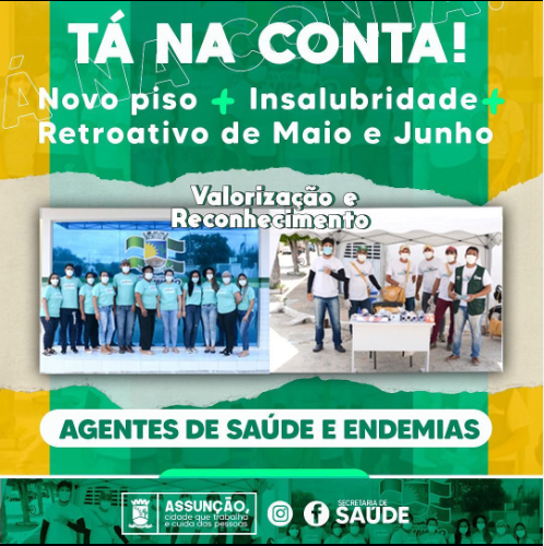Tomamos o cuidado de cumprir o novo piso salarial dos nossos Agentes de Saúde e Endemias.