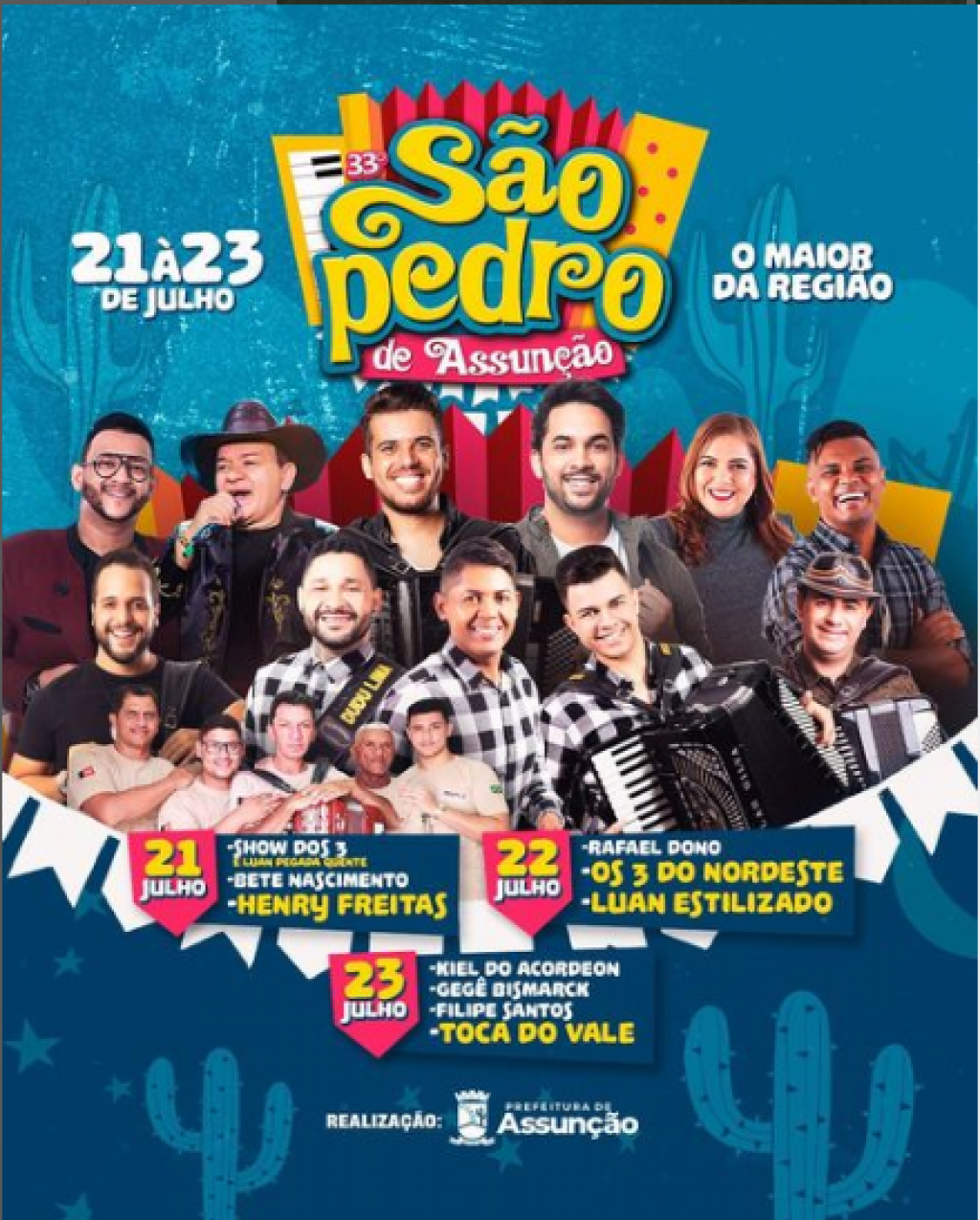 Saiba quais são as atrações da Festa de São Pedro em Assunção, que acontece nos dias 21,22 e 23 de Julho.