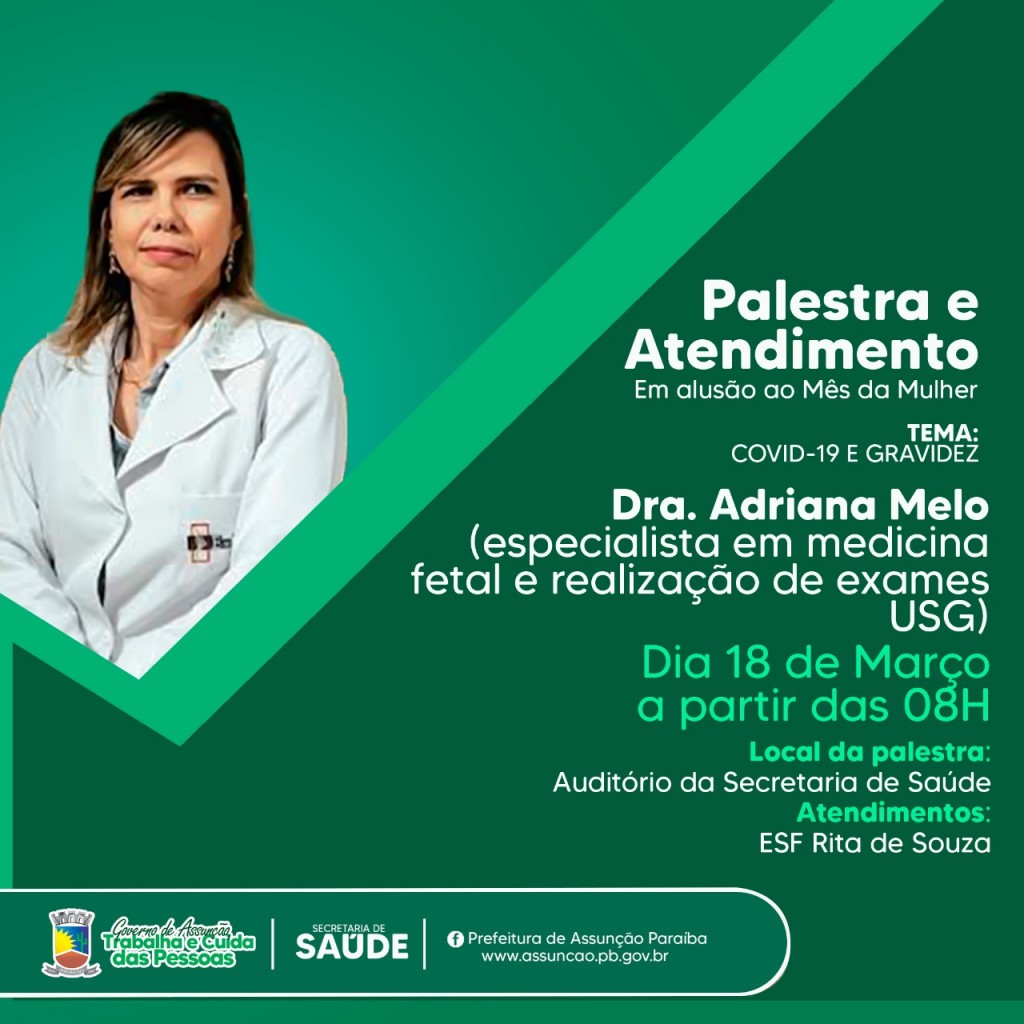 Na sexta-feira dia 18 será a vez do município receber a médica especialista em medicina fetal, doutora Adriana Melo
