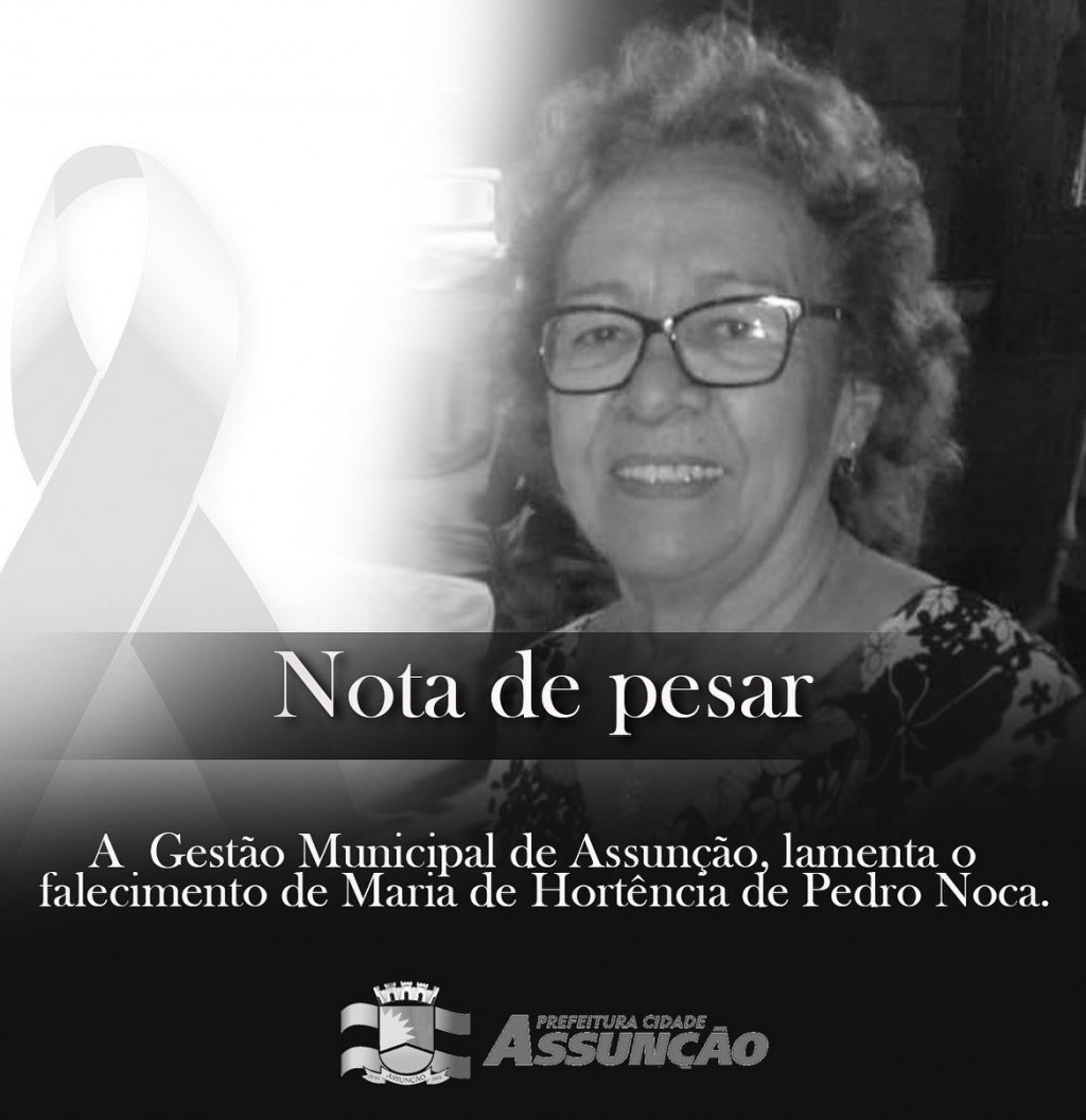 A Governo de Assunção, através do Prefeito Vogel, se solidariza com a família e os amigos de Maria de Hortênsia de Pedro de Noca, que faleceu nessa quinta-feira (25).