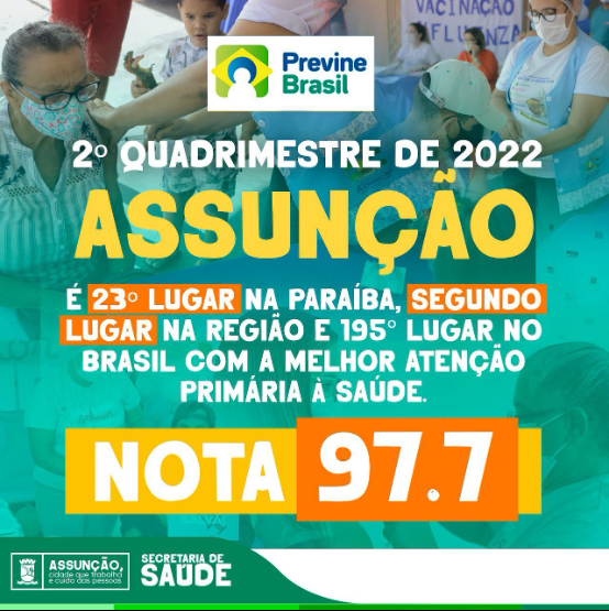 A serviço de saúde pública de Assunção, está entre as 200 melhores cidades do Brasil, entre as 23 da Paraíba e é a segunda da nossa região.