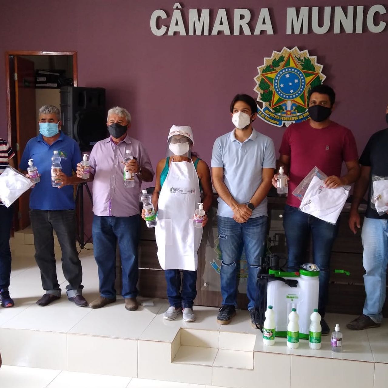 Nos kits os agricultores receberam álcool gel, álcool 70; máscara; touca, avental e uma bomba costal para desinfecção.