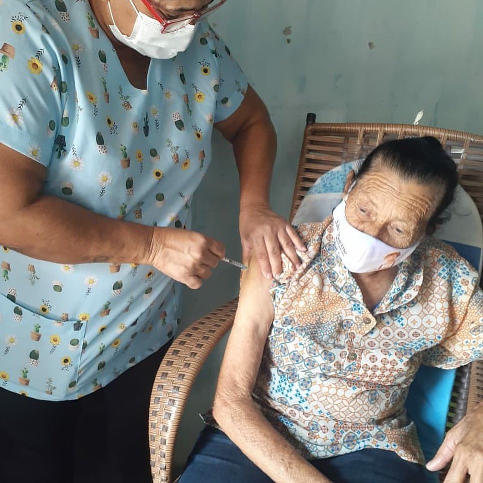 Os idosos que não possuíam condições de locomoção ou moradores da Zona Rural, receberam os imunizantes em domicílio. Já os que podiam ir até a Unidade Básica, foram disponibilizados veículos para o transporte.